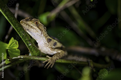 Common basilisk (Basiliscus basiliscus) juvenile, animal portrait, at night, Tortuguero National Park, Costa Rica