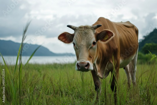 Community gathers to find a special cow for ritual sacrifice in rural setting. Generative AI