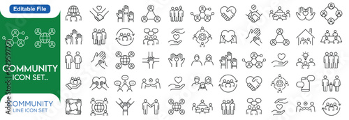 Community line editable icon set. Containing people, friendship, social, diversity, village, relationships, support and Line icon set..