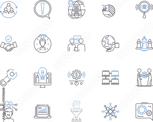 Community management outline icons collection. Community, Management, Organizing, Engaging, Building, Connecting, Networking vector and illustration concept set. Facilitating, Developing, Outreach