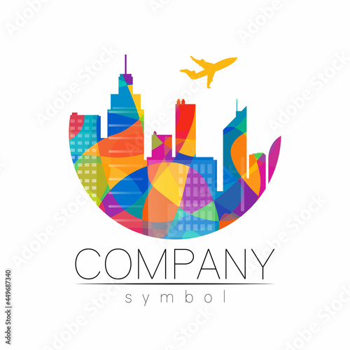 Company Logo Vector City Town Icon for Branding Real Estate Symbol Building and Apartment Rent Concept Sign with airplane