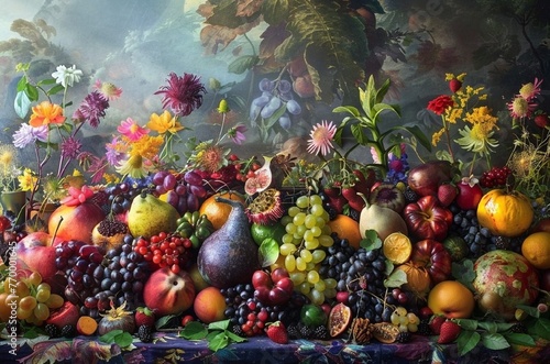 Complex fruit composition in high fantasy style. Fruit fantasies
