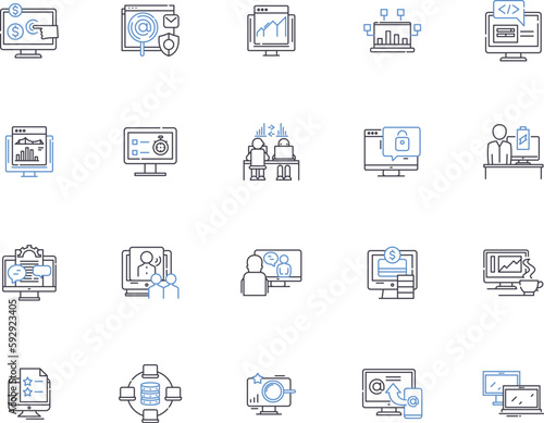 Computing outline icons collection. Computing, Technology, Hardware, Software, AI, Coding, Robotics vector and illustration concept set. Networks, Databases, Cloud linear signs