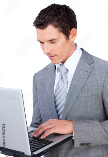 Concentrated businessman using a laptop