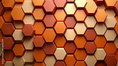 Concentric hexagons, in varying shades of orange and brown, creating depth, soft natural lighting