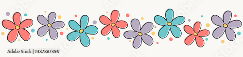 Concept of banner with hand drawn flowers. Mother’s Day, Women’s Day and Valentine’s Day decoration. Vector