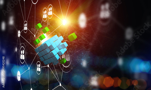 Concept of Internet and networking with digital cube figure on dark background