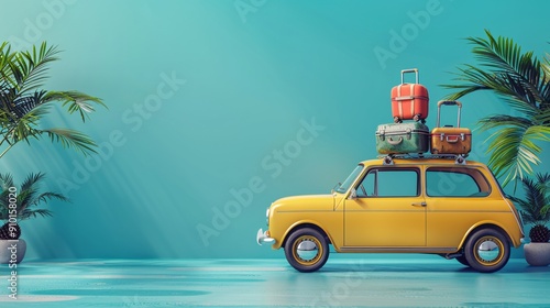 concept of travel with vintage car and luggage with empty space