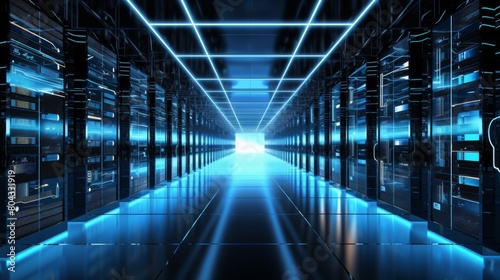 conceptual server room with neon blue emissive.