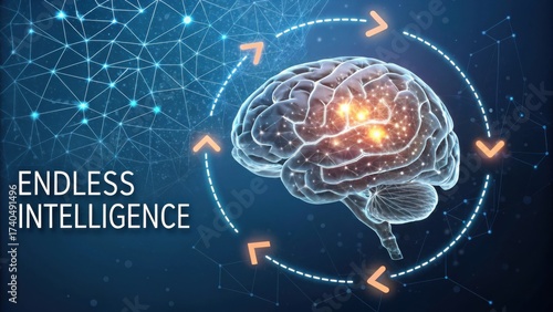 Conceptual Visualization of Brain with Neural Connections and Nodes Representing Endless Intelligence Potential
