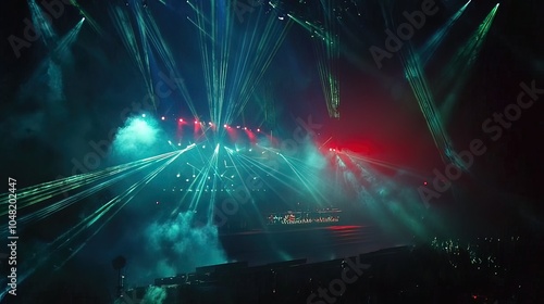 Concert Stage with Green and Red Lights