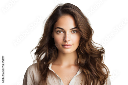 Confident Attractive Young Woman with Wavy Hair in Blouse - Transparent PNG