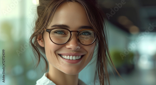 Confident Businesswoman with a Beaming Smile, Elegant Eyewear Portrait