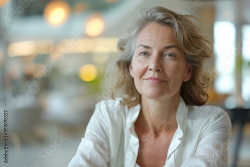 Confident Mature Woman Portrait - Professional Businesswoman White Shirt Soft Focus Background