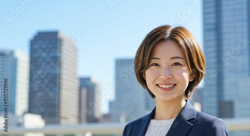 Confident Short-Haired Japanese Businesswoman in Modern City: Embracing Elegance and Determination