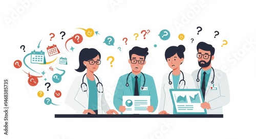 Confused medical team seeking solutions to complex problems and data analysis