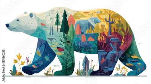 Conservation side view wildlife protection cartoon drawing vivid flat design.