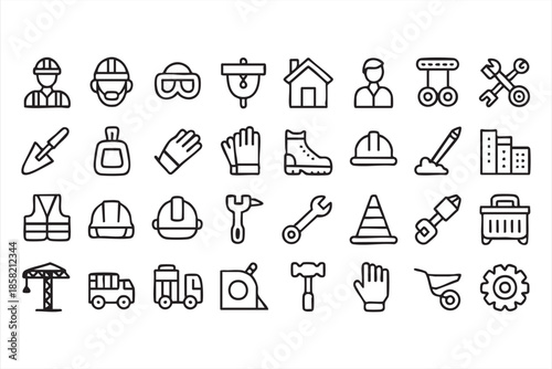 Construction Safety and Tool Icons for Industrial Worksite Operations