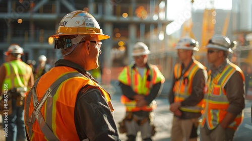 Construction Team Conducts Toolbox Talk for Site Safety on Industrial Worksite