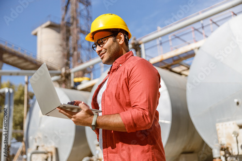 Construction worker is leading production process outdoors