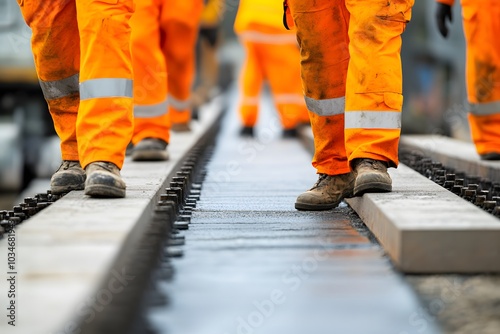 Construction Workers Walking on New Railway Tracks