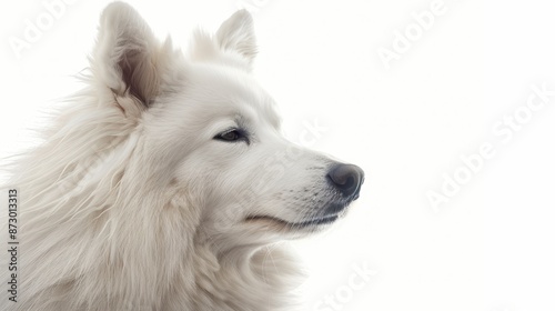 Contemplative Samoyed with Thoughtful Expression on Isolated White Background