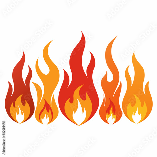 Continuous Flames In Various Intensities In Row On Transparent Background