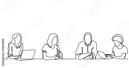 continuous line drawing of office workers at business meeting