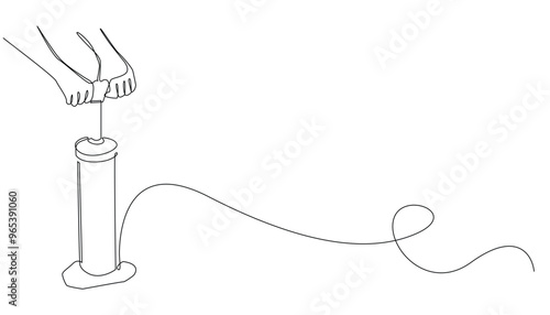 continuous line of air pump.one line drawing of person pumping tire,pumping bath,pumping bed.vector illustration.isolated white background