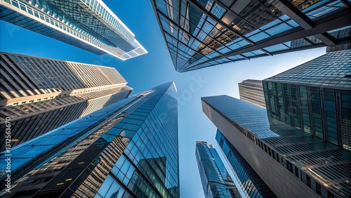 Converging Skyscrapers: A Stunning Urban Skyline Against a Clear Blue Sky