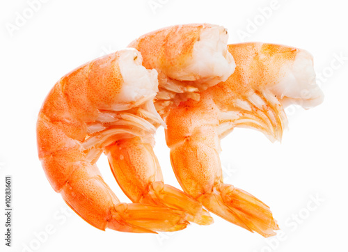 Cooked shelled tiger shrimp isolated on white