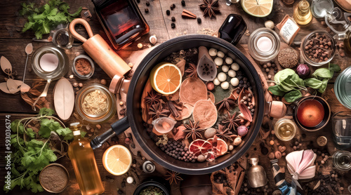 Cooking pot and various organic ingredients were combined to create a dish - generative ai.