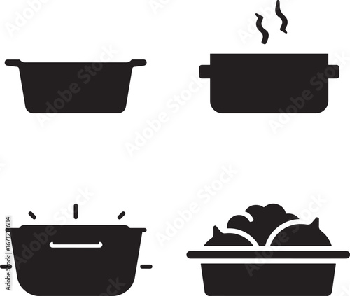 Cooking pot icon vector collection – kitchen utensil and meal preparation illustration