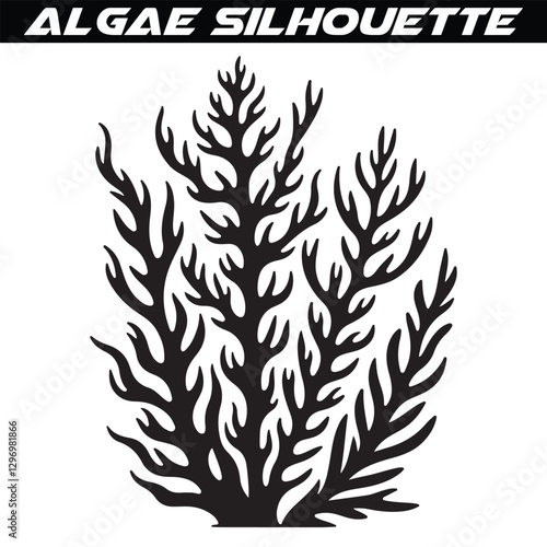 coral algae silhouette, coral algae tree simple flat vector. Sea grass and corals silhouette