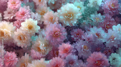 coral reef in the sea, A lot of pastel-colored flowers filling the screen