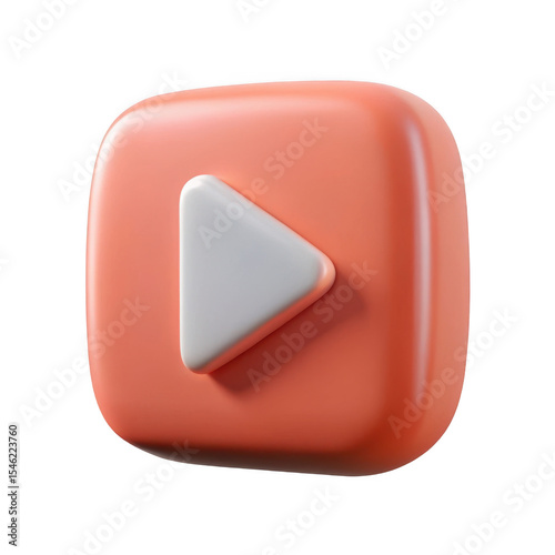 Coral Square Play Button 3 D Render isolated on a transparent background