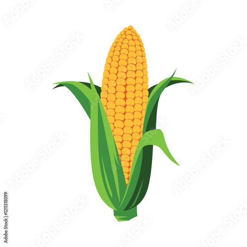 Corn vegetable vector illustration. Design element for Mexican cuisine, food packaging and culinary. Flat style, isolated on white background.