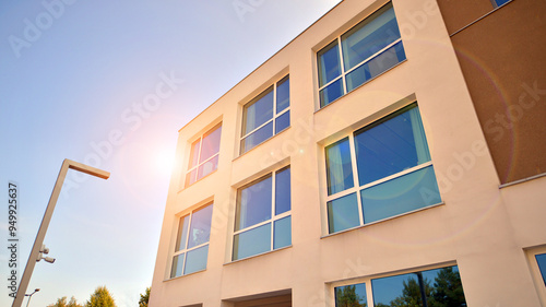 Corporate architecture building. New white modern office building