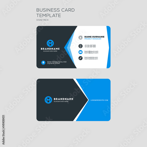 Corporate business card print template. Personal visiting card with company logo. Clean flat stationery design. Vector Illustration