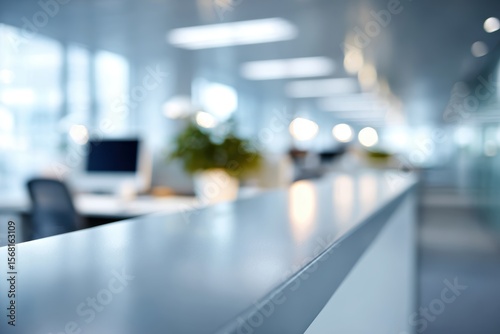 Corporate office background with out-of-focus workstations