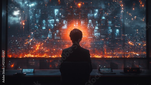 Corporate Team Engaging in Virtual Collaboration with Digital Screens in Modern Conference Room