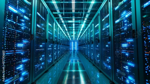 corridor data server room warehouse with advanced storage technology background,generative ai