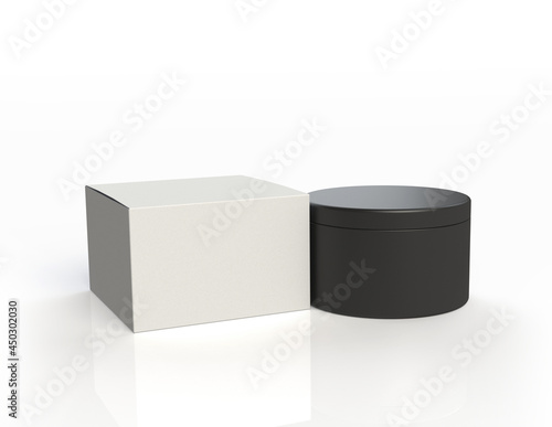 Cosmetic pot/jar and carton packaging mock-up with shadow and reflection
