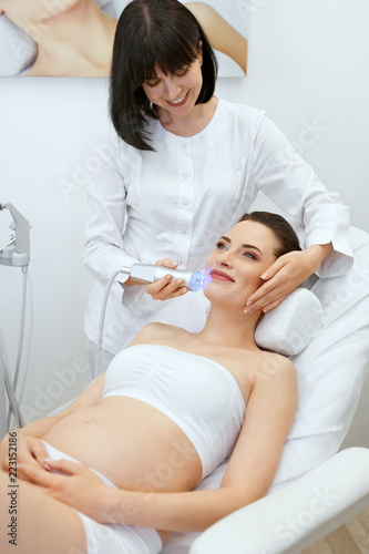 Cosmetology. Pregnant Woman At Face Skin Stimulation Procedure