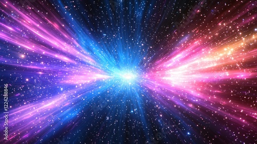 Cosmic Burst of Light and Color in Deep Space with Streaks of Pink Blue and Orange