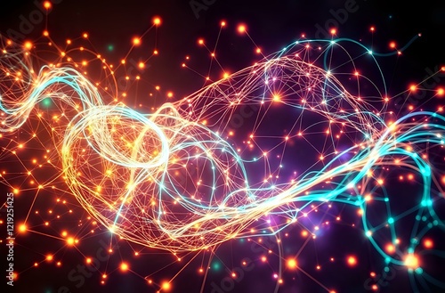 Cosmic Galaxy Swirl: Dark Blue and Orange Abstract Space Scene