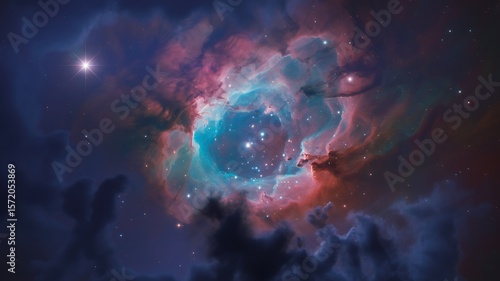 Cosmic gas clouds glowing with vibrant colors and scattered stars nebula space