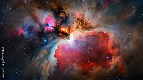 Cosmic nebula patterns with vibrant colors and star details, intergalactic wonder