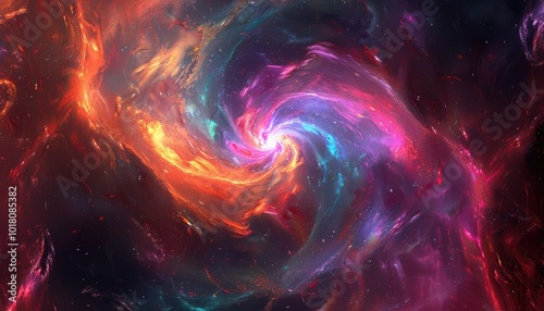 Cosmic Nebula with Swirling Colors and Glowing Stars