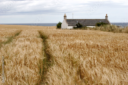 Cottage and field - Catterline - Aberdeenshire - Grampian - Scotland - UK